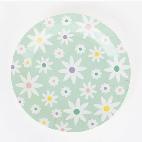 Conjunto de 8 pratos com o tema margaridas para decorar a tua festa de aniversário com o mesmo tema.