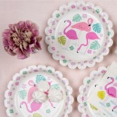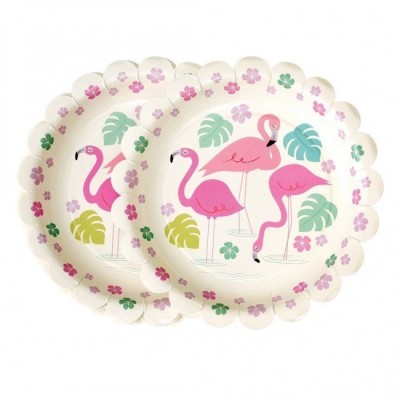 Pack de 8 pratos descartáveis da marca Flamingo Bay com diâmetro de 17,5cm.Material: papel.Peso: 11g