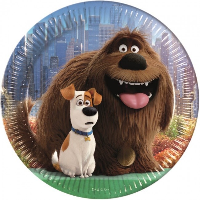 Conjunto de 8 pratos de papel cartonado dos adoráveis animais do filme Secret Life of Pets - A Vida Secreta dos Nossos Bichos. Diâmetro: 23cm.