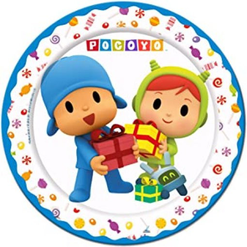 Conjunto de 8 pratos do Pocoyo com 23cm. Ideal para decorares a tua festa com o mesmo tema.