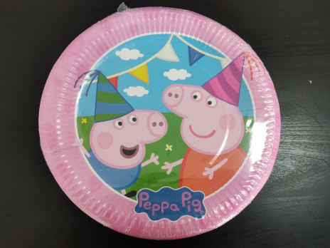 Conjunto de 8 pratos da Porquinha Peppa, ideal para decorar a tua festa de aniversário com o mesmo tema.