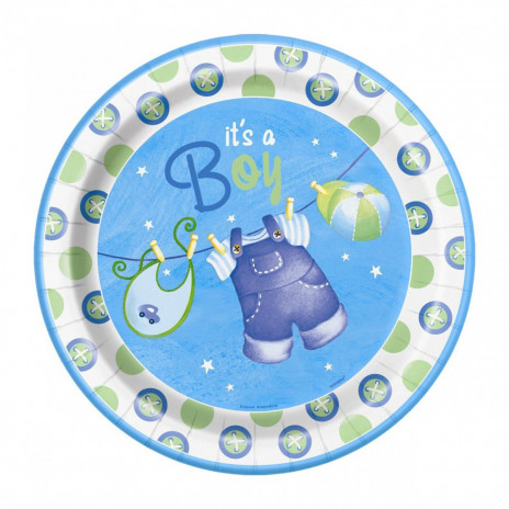 8 Pratos Redondos 23cm Blue Baby Shower