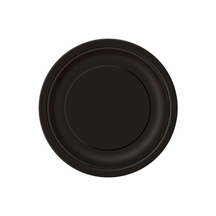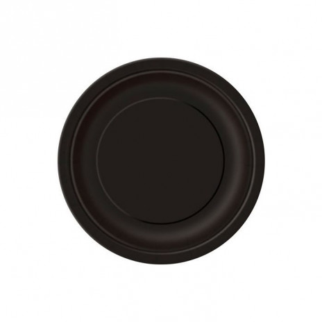 Conjunto de 8 pratos redondos descartáveis na cor preta para qualquer tipo de festa de aniversário e ou evento.
