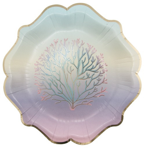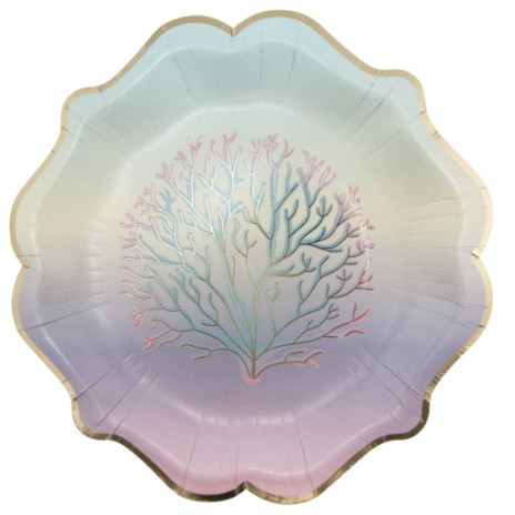 Conjunto de 8 pratos de sereia, para decorar a tua festa de aniversário com o mesmo tema.