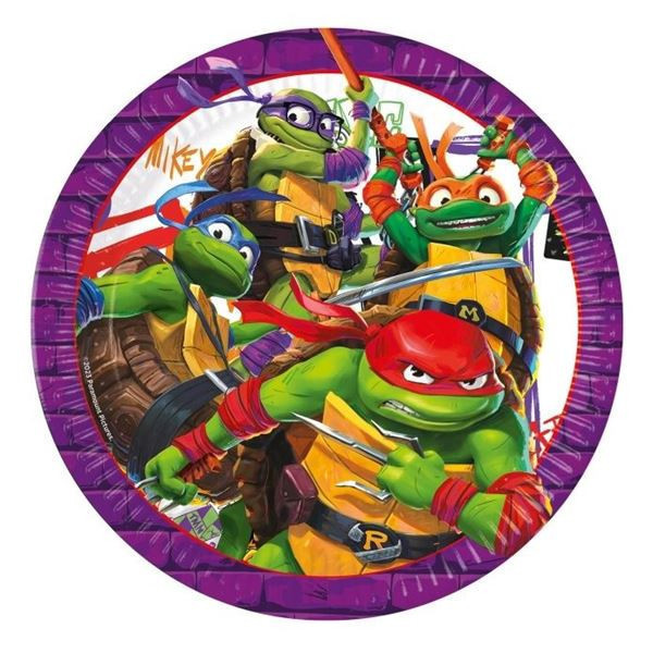 Conjunto de 8 pratos das Tartarugas Ninja, para decorar a tua festa de aniversário com o mesmo tema.