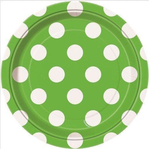 Pack de 8 pratos descartáveis na cor Verde claro com bolinhas brancas