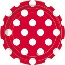 Pack de 8 pratos descartáveis na cor Vermelha com bolinhas brancas