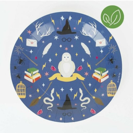 Conjunto de 8 pratos com o tema wizard/feiticeiro para decorar a tua festa de aniversário com o mesmo tema.