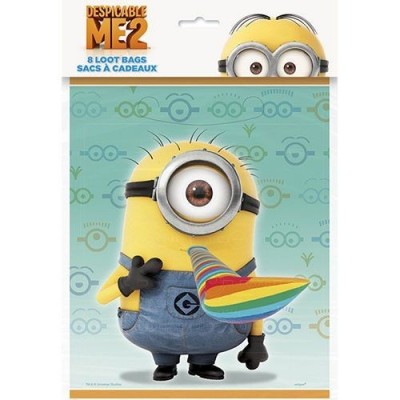 Pack com 8 sacos de prenda para uma festa de aniversário original e divertida com os irrestiveis Minions do filme Gru - O Mal Disposto.