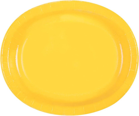 Conjunto de 8 travessas ovais descartáveis em papel na cor amarela para todo o tipo de festas.