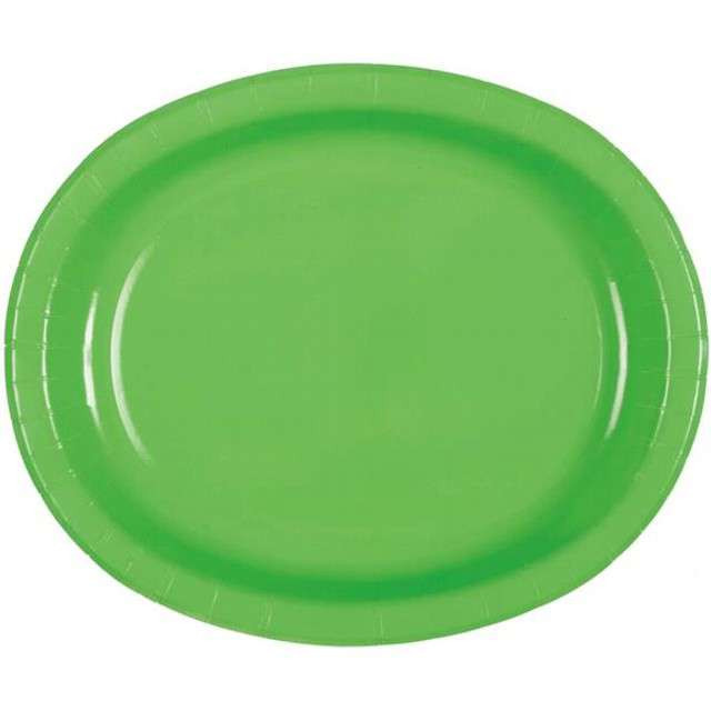 Conjunto de 8 travessas ovais descartáveis em papel na cor verde lima para todo o tipo de festas.