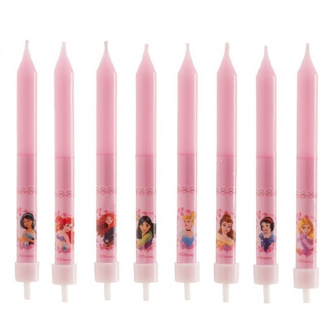 Conjunto de 8 velas de 9cm das Princesas Disney dekora