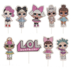 Conjunto de 9 mini toppers recortados das LOL Surprise para cupcakes, salgadinhos ou finger food. Um complemento de decoração ideal para a festa de aniversário.