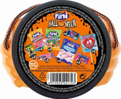 O sortido de guloseimas que não te pode faltar neste Halloween está nesta abóbora da Fini em forma de demónio.