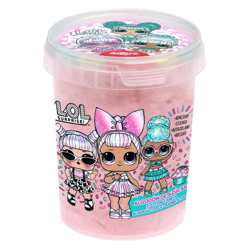 Embalagem com algodão doce de sabor a morango das LOL Surprise com capacidade de cerca de 30 gramas. Inclui autocolantes sortidos das tuas amiguinhas, as LOL Surprise.