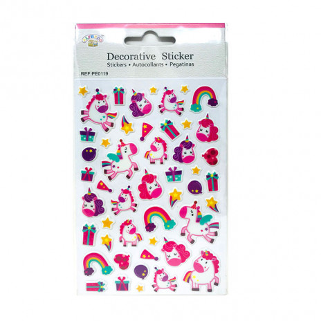 Conjunto de autocolantes com relevo de mundo de unicórnios para decorares os teus aparelhos eletrónicos, como o pc, o telemóvel, etc, presentes e albuns de fotos. Um brinde ideal para ofereceres aos convidados do teu aniversário.