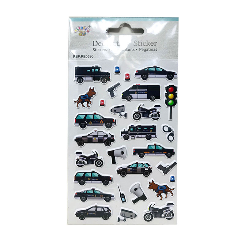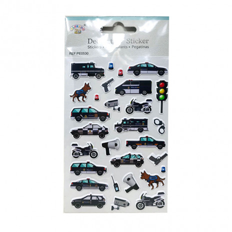 Conjunto de autocolantes com relevo de polícias para decorares os teus aparelhos eletrónicos, como o pc, o telemóvel, etc, presentes e albuns de fotos. Um brinde ideal para ofereceres aos convidados do teu aniversário.