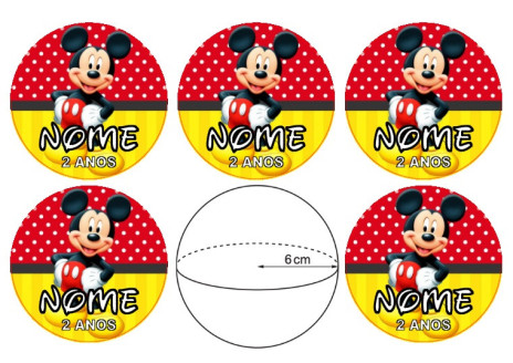 Conjunto de 6 etiquetas adesivas e personalizadas com o que desejar do rato Mickey Mouse.