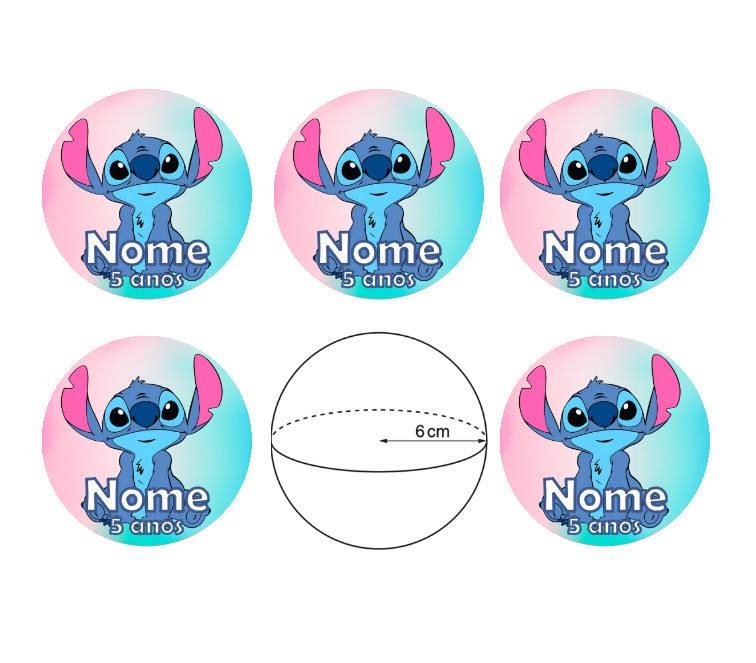 Conjunto de 6 etiquetas adesivas e personalizadas com o tema Stitch.