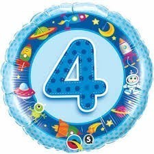 Balão Foil para 4 ano ou 4 mês com objectos do espaço em cor AzulMedidas: 18 "