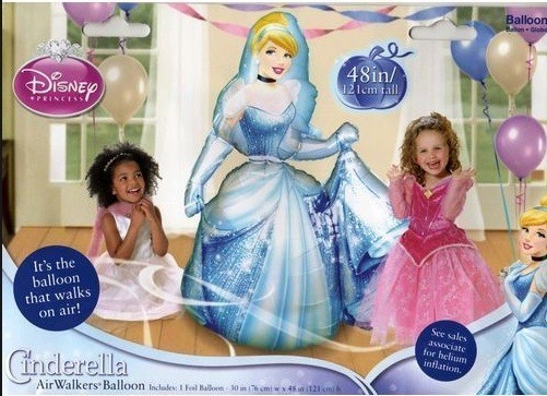 Belíssimo e colorido balão, caminhante no ar, com formato da Cinderela, da Disney, para tornar a tua festa de aniversário única e inesquecível.