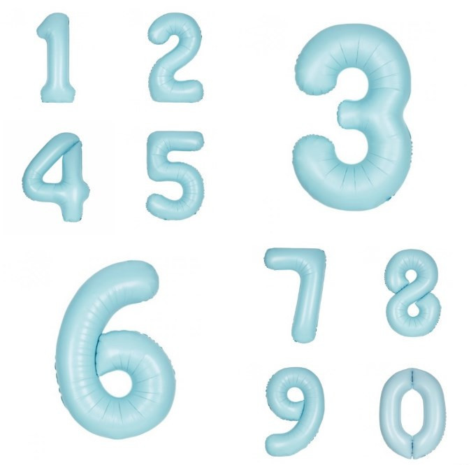 Balão em foil (folha de alumínio) em azul mate ou azul bebé com 86 cm de altura (34" polegadas). O balão é reutilizável e inclui pontas para suspender o balão caso seja cheio com ar.