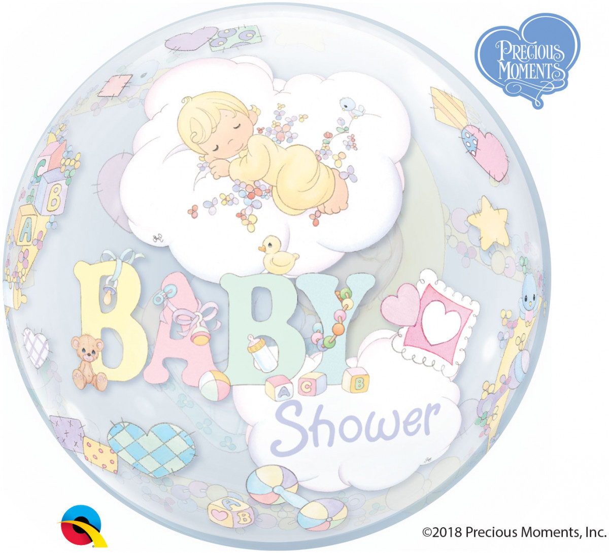 Balão bolha transparente ideal para festas baby shower de meninas ou de gémeos dado que tem a particularidade de ter 2 frentes a principal com a menina e o verso com um menino.
