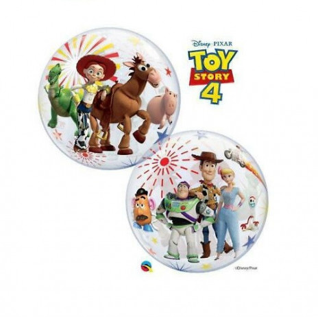 Os Bubbles ou balões bolha são fabricados maioritariamente com um plástico transparente com desenhos muito nítidos e coloridos, o que torna o resultado final muito interessante. Para além disso, graças à qualidade do material, eles podem durar cheios muito mais tempo do que os balões convencionais. Balão de dupla face com duas imagens alusivas ao Toy Story 4. Para animar ainda mais a tua festa de aniversario do tema.