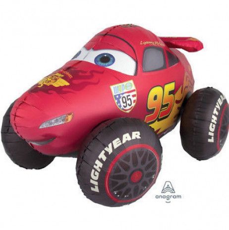 Embalagem com 1 balão grande em folha de alumínio com a forma de um carro, alusivo ao tema Cars Disney, para decoração das festas de aniversário.