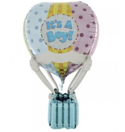 Balão Metalizado Grabo Internacional a imitar um balao de ar quente que poderá trazer um bebé menino no seu interior• Ideal para decoração em festas e datas comemorativas.Dados Técnicos:• Tamanho 3' polegadas (Aprox. 91 cm) – FLUTUA quando insuflado a gás Hélio, pode permanecer cheio entre 5 a 7 dias em temperatura ambiente. Quando insuflado a “AR”, pode permanecer cheio por até 30 dias. Por possuir válvula auto selante pode ser insuflado novamente e o balão se manter em perfeitas condições. Obs. Os balões mesmo selados ou manuseados correctamente podem sofrer com a variação da temperatura.