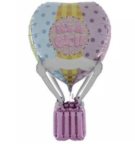Balão Metalizado Grabo Internacional a imitar um balao de ar quente que poderá trazer um bebé menina no seu interior.• Ideal para decoração em festas e datas comemorativas.Dados Técnicos:• Tamanho 3' polegadas (Aprox. 91 cm) – FLUTUA quando insuflado a gás Hélio, pode permanecer cheio entre 5 a 7 dias em temperatura ambiente. Quando insuflado a “AR”, pode permanecer cheio por até 30 dias. Por possuir válvula auto selante pode ser insuflado novamente e o balão se manter em perfeitas condições. Obs. Os balões mesmo selados ou manuseados correctamente podem sofrer com a variação da temperatura.