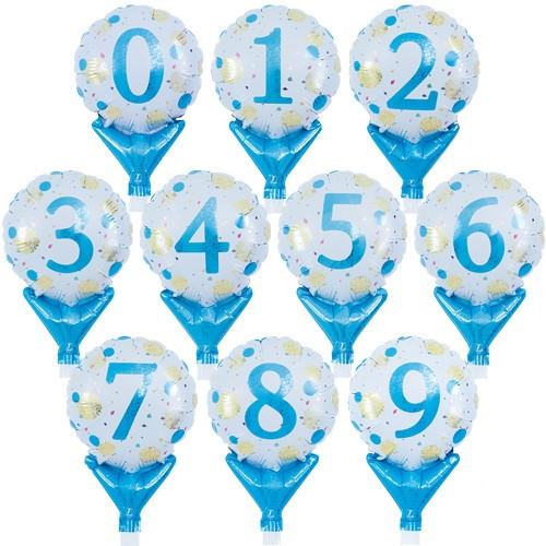 Balão com número para alegrar qualquer criança em tons de azul. Pode simplesmente usá-lo como balão de mão, decoração ou para completar um arranjo.