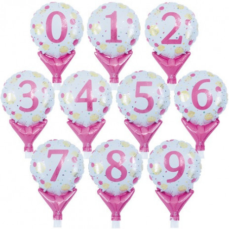 Balão com número para alegrar qualquer criança em tons de cor de rosa. Pode simplesmente usá-lo como balão de mão, decoração ou para completar um arranjo.