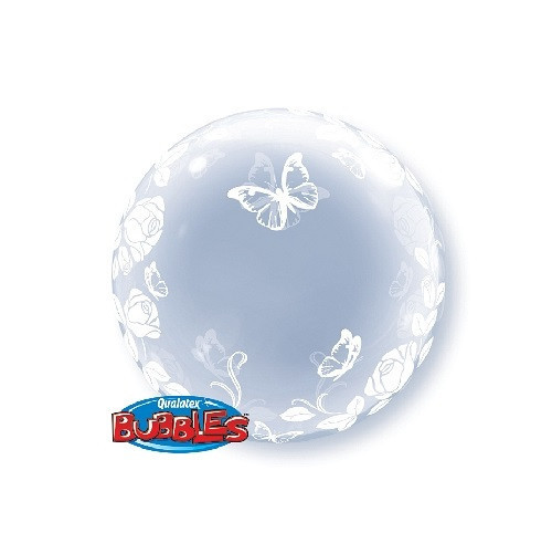 Balão bolha transparente com rosas e borboletas para qualquer tipo de festa.