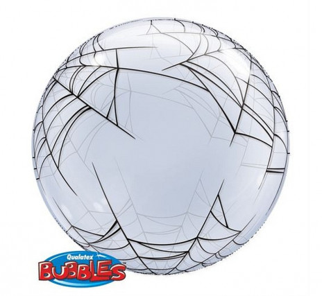 Balão bubble deco da Qualatex com teias de aranha, para os amantes do homem aranha ou para qualquer ocasião especial.