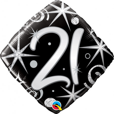 Belíssimo balão foil Supershape em forma de um diamante para qualquer comemoração alusiva aos 21 anos.