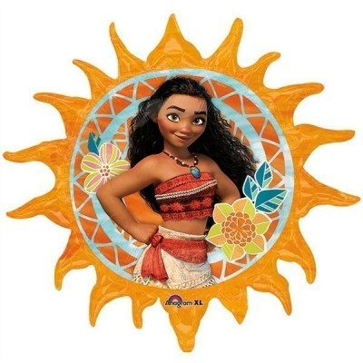 Balão em formato sol com imagem da Vaiana, o mais recente filme da Disney. Ideal para decoração de festas aniversário com o tema Vaiana.
