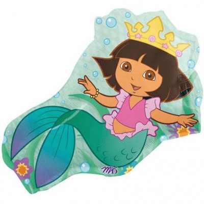 Balão grande da Dora a exploradora com as dimensões de 51x71cm em folha de aluminio (foil).Pode encher com ar e suspender ou com hélio para flutuar.Retenção de hélio: até 3 semanas.