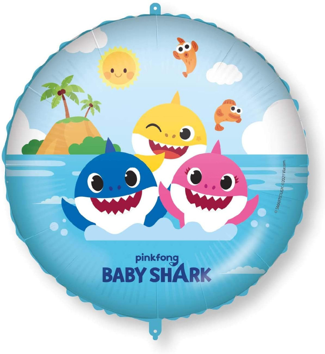 Balão foil redondo do Baby Shark com 46cm. Ideal para decorar a tua festa com o mesmo tema. Pode ser cheio com hélio ou ar. Contém palhinha para encher mais facilmente com ar e tem uma estrela que servirá de peso caso encha com hélio. Inclui também a fita para prender ao peso.