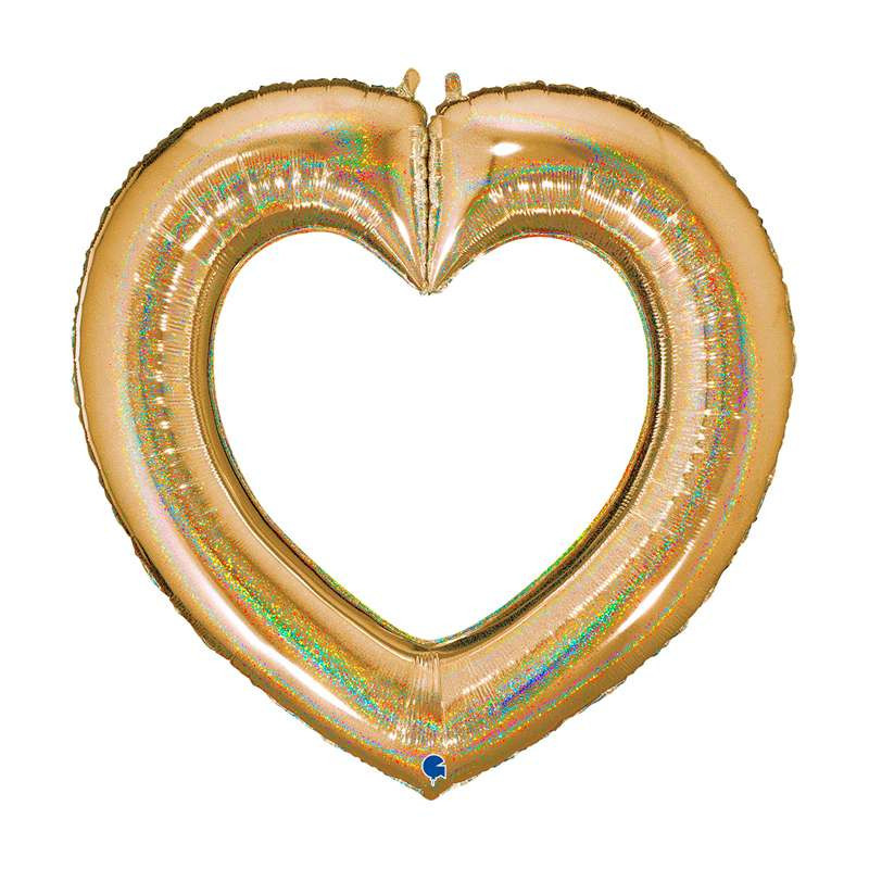 Balão foil com o contorno em forma de coração em cor dourada glitter holográfico para dar glamour a qualque festa especial.