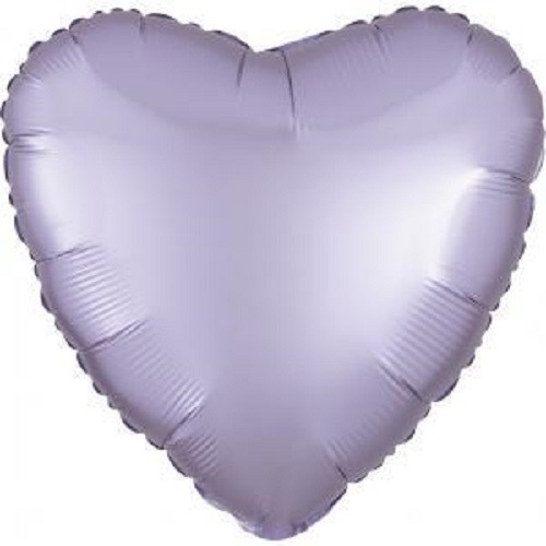Balão foil em forma de coração em lilás pastel acetinado, com acabamento metálico fosco e cintilante.