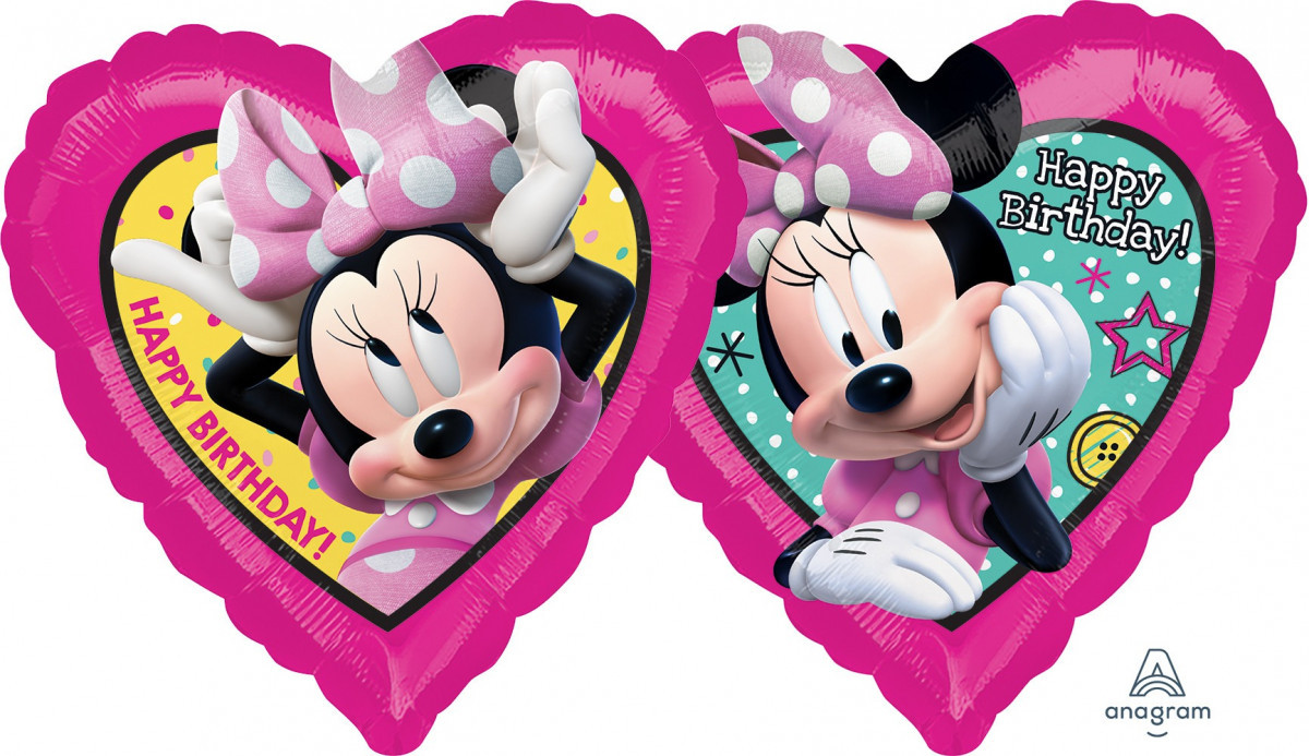 O balão em formato coração que não pode faltar na tua festa de anos do tema da Minnie. Em foil, pode ser cheio com ar ou hélio. Balão de dupla face, com duas imagens diferentes.