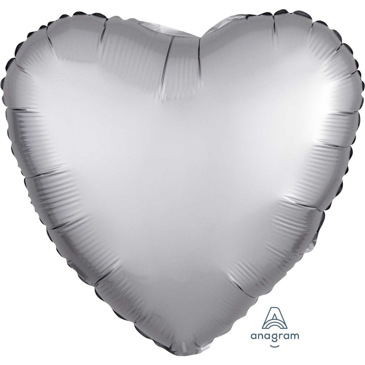 Balão foil em forma de coração em prateado platinium acetinado, com acabamento metálico fosco e cintilante.