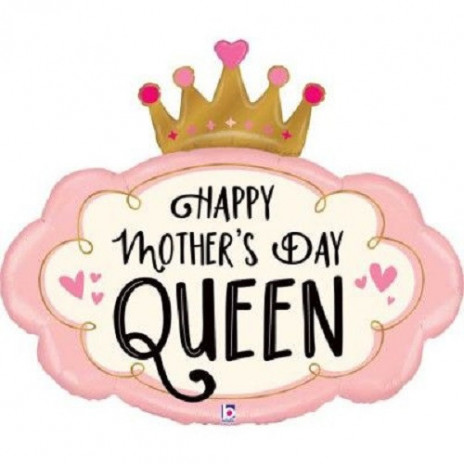 Balão foil com a forma de coroa para celebrar o dia da mãe com a inscroção "Happy Mother's Day Queen". Pode encher com ar e suspender ou com hélio para flutuar.