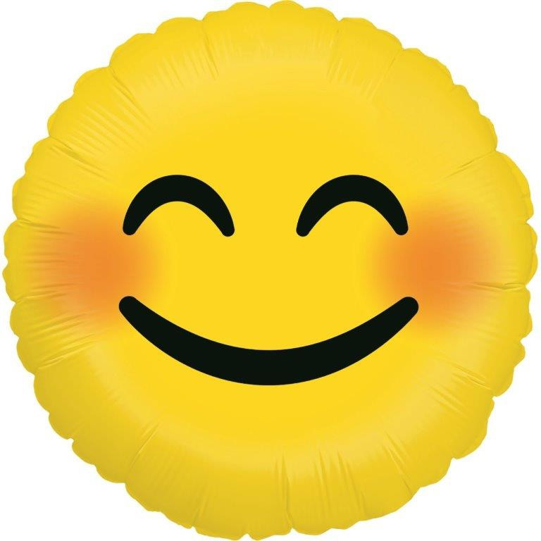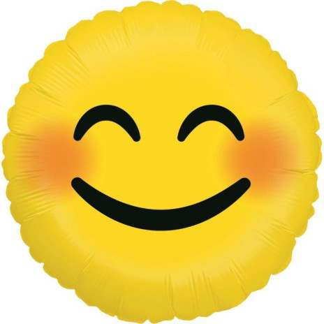 Balão redondo em amarelo dum emoji para qualquer ocasião especial ou para a festa do tema dos emojis com as dimensões de 45 cm em folha de aluminio (foil). Pode encher-se com ar e suspender ou com hélio para flutuar.