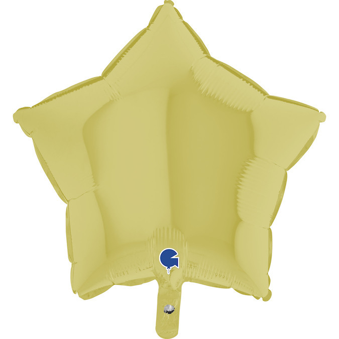 Balão foil na cor amarela pastel na forma de estrela.Medida aproximada: 46 cm.Enchimento com hélio disponível na nossa loja.