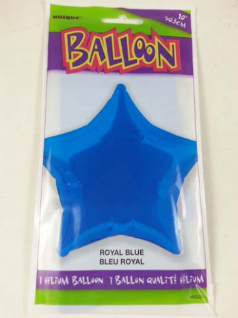 Balão em foil (folha de alumínio) azul royal metalizado em forma de estrela de altura (50.8cm cheio).O balão é reutilizável e inclui pontas para suspender o balão caso seja cheio com ar.