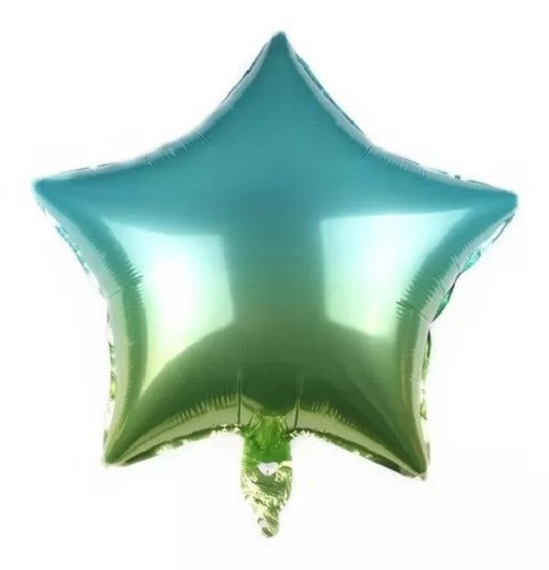 Balão em folha metálica (foil) em formato de estrela ombre, de azul a amarelo para decorar a sua festa.