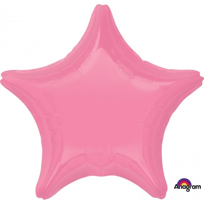 Balão em foil (folha de alumínio) rosa metalizado em forma de estrela de altura (48cm cheio).O balão é reutilizável e inclui pontas para suspender o balão caso seja cheio com ar.