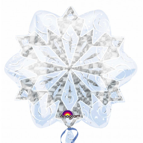 Balão foil em forma de floco de neve, holográfico. Para temas de inverno e para festas da Frozen.